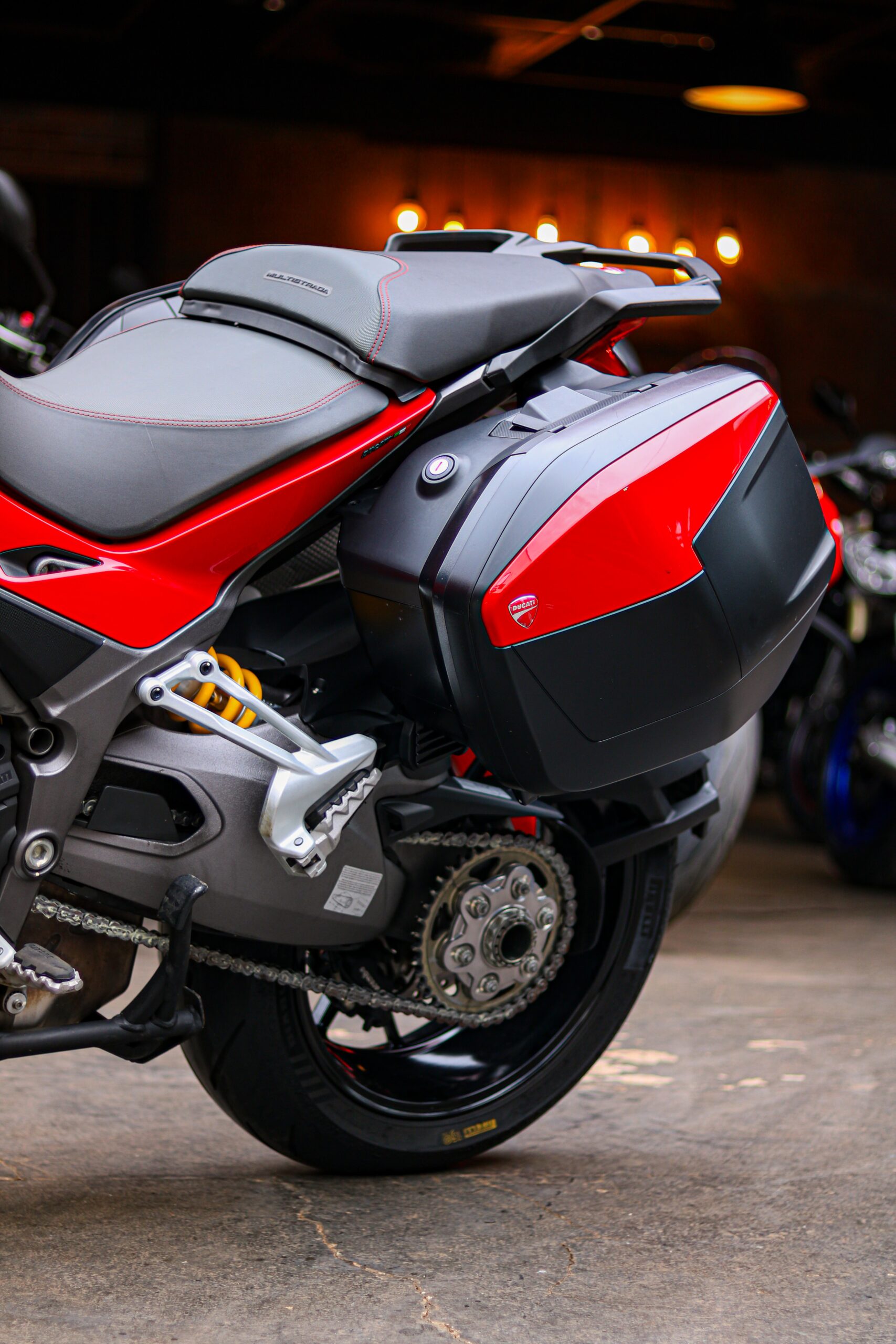 Essa Multistrada 1260 S reúne excelente estado de conservação com a praticidade que o modelo oferece. Com 10.952 km, está muito bem cuidada e tem todas as revisões realizadas na concessionária, reforçando sua procedência. Vem equipada com os baús originais Ducati, que ampliam sua versatilidade para viagens e uso diário. Uma 1260 S completa, confiável e pronta para seguir rodando com conforto e desempenho.