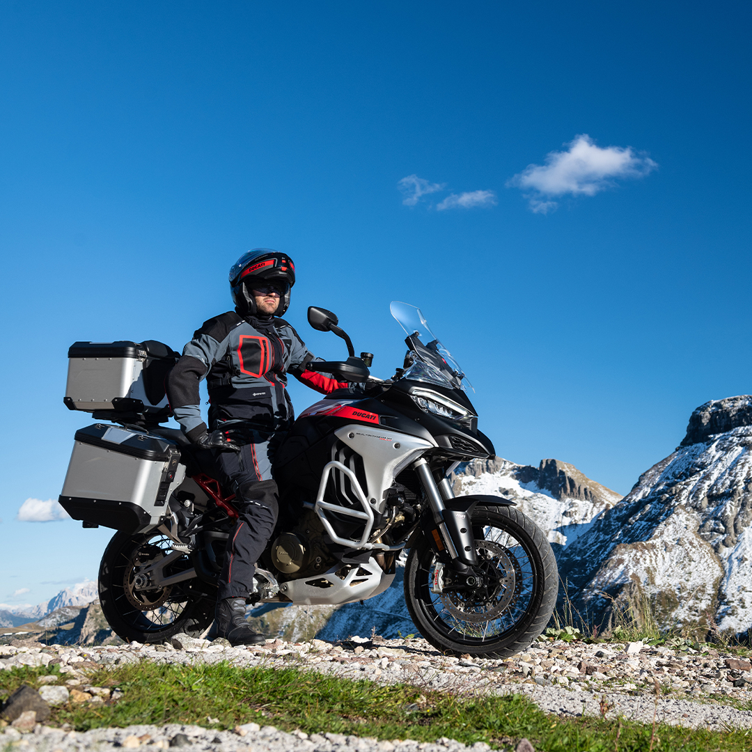 Uma moto imparável graças ao novo tanque de 30 litros de alumínio e à nova suspensão semi-ativa Ducati Skyhook Suspension Evolution. Ainda mais confortável graças ao maior espaço para passageiros e ao desenvolvimento sofisticado da aerodinâmica. E ainda mais exclusivo com rodas raiadas já disponíveis de série.