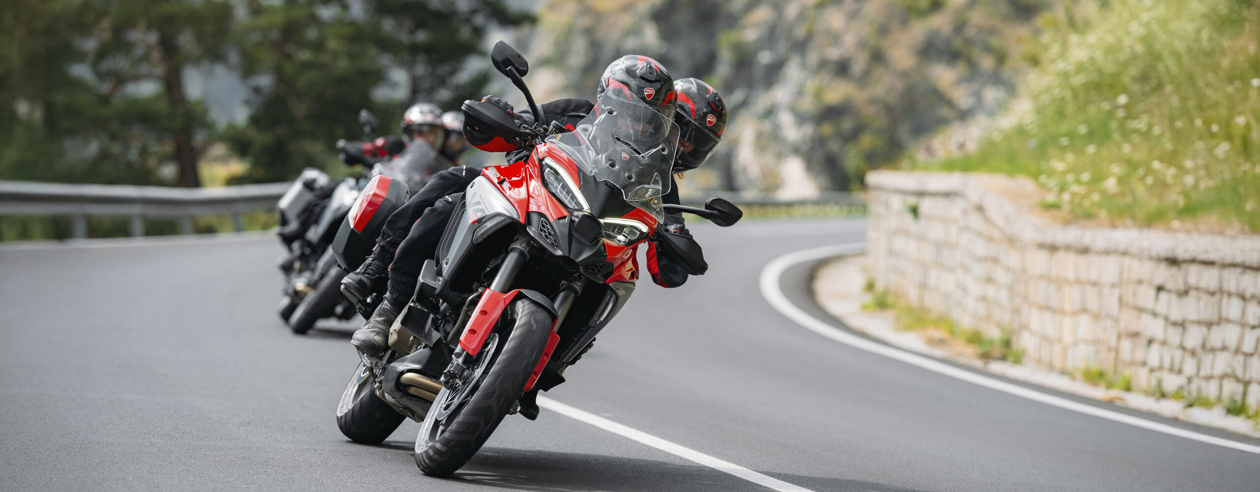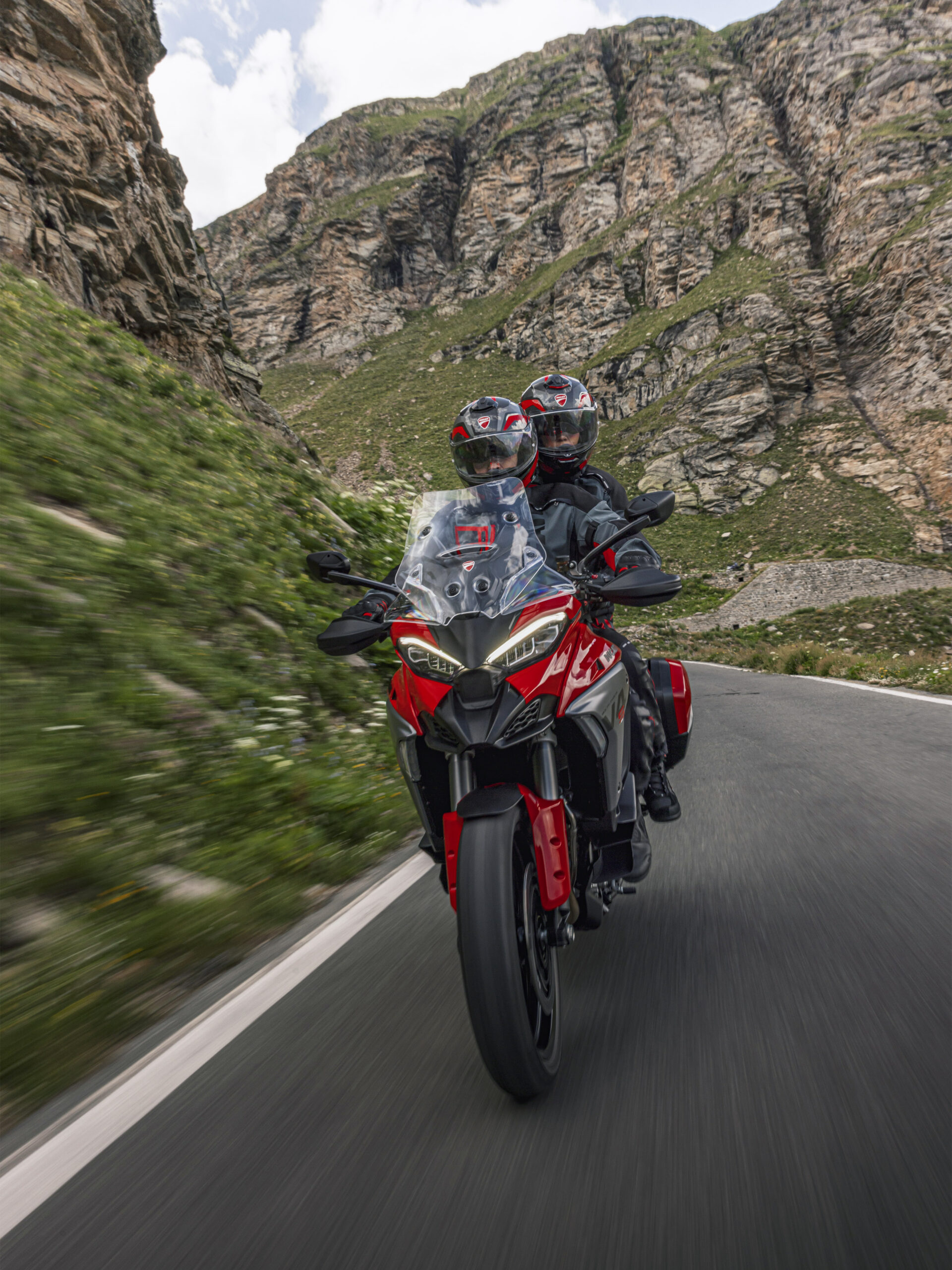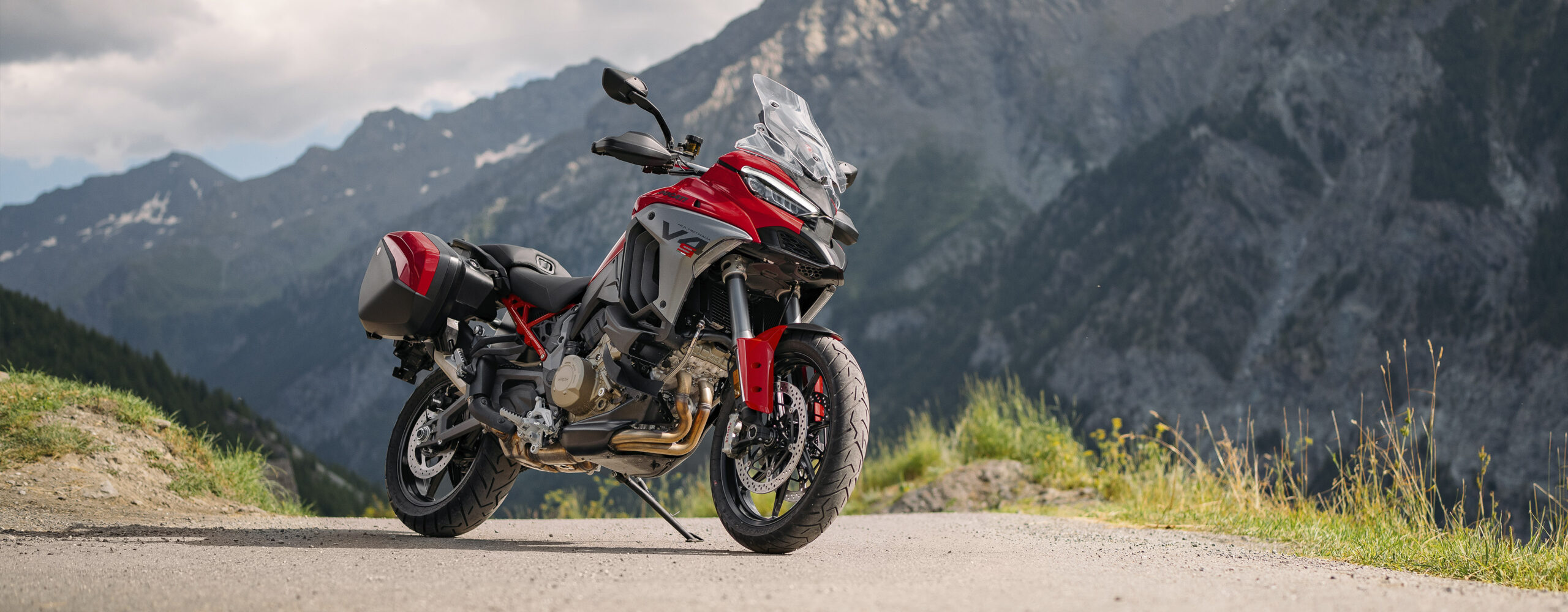 A Multistrada V4 foi a primeira moto do mundo a integrar radar dianteiro e traseiro, ativando sistemas avançados de assistência ao piloto, como Cruise Control Adaptativo, Aviso de Colisão Frontal e Detecção de Ponto Cego. O Cruise Control Adaptativo mantém automaticamente uma distância segura do veículo da frente, enquanto o Aviso de Colisão Frontal avisa o condutor em caso de aproximação súbita. A Detecção de Ponto Cego ajuda a identificar veículos que vêm de trás, melhorando ainda mais a segurança.