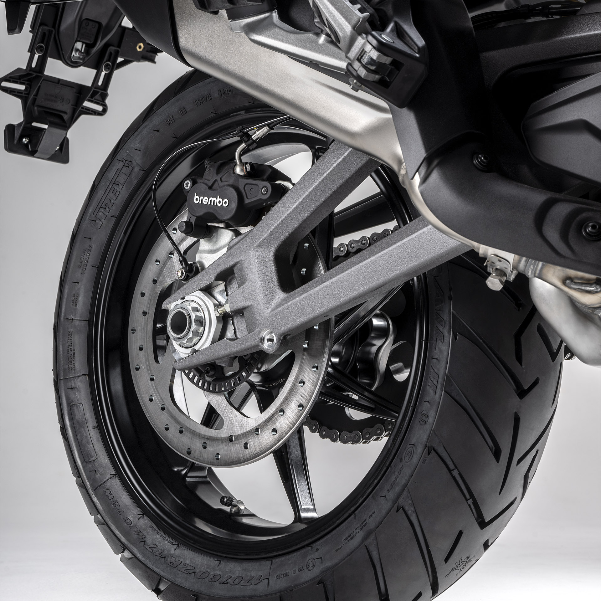 O disco de freio traseiro aumentou de 265 para 280 em comparação com a geração anterior. A alavanca traseira regressiva possui um novo pedal que proporciona mais aderência e gera uma melhor sensação de eficiência: maior força de frenagem e maior modulabilidade.