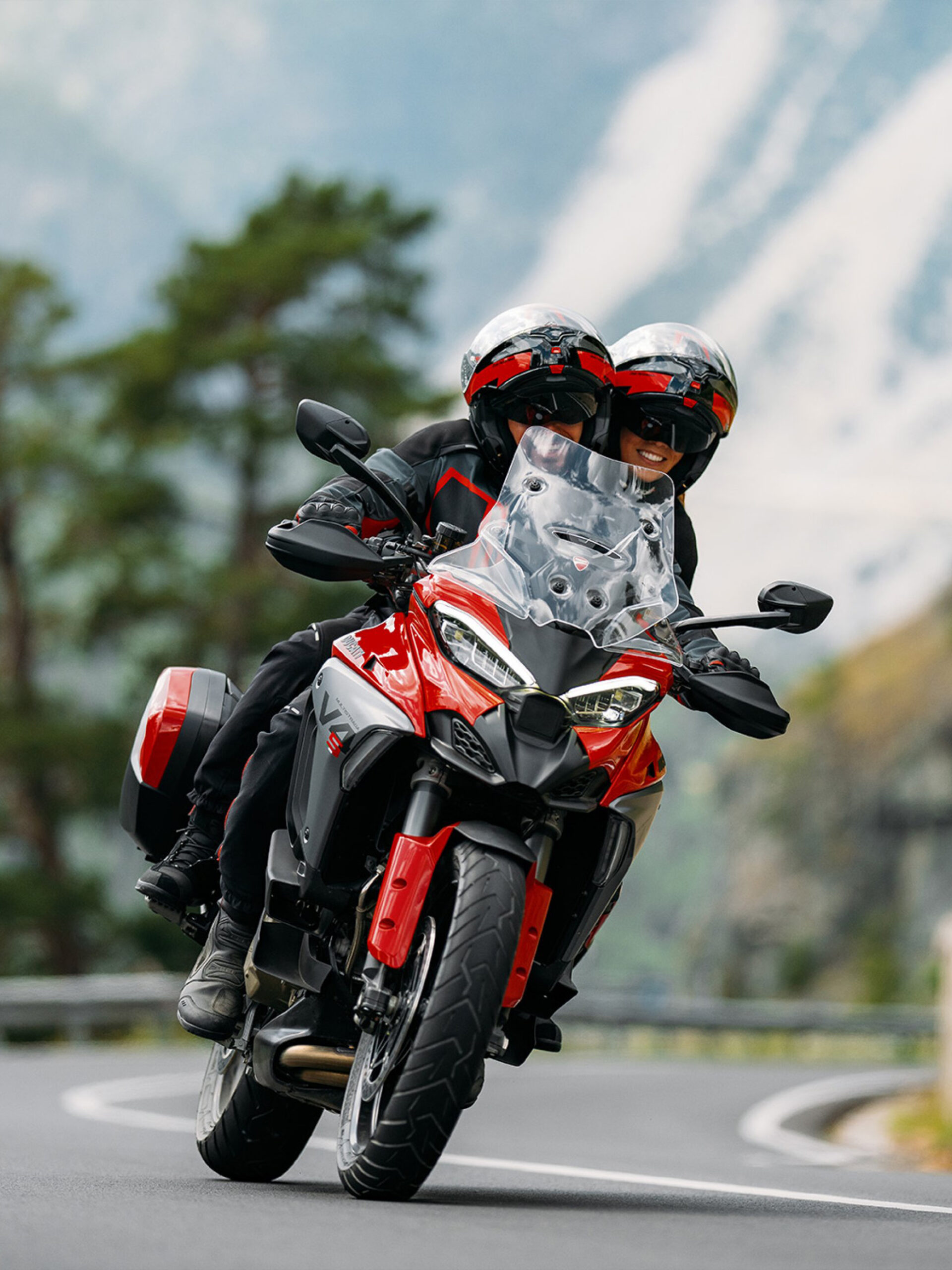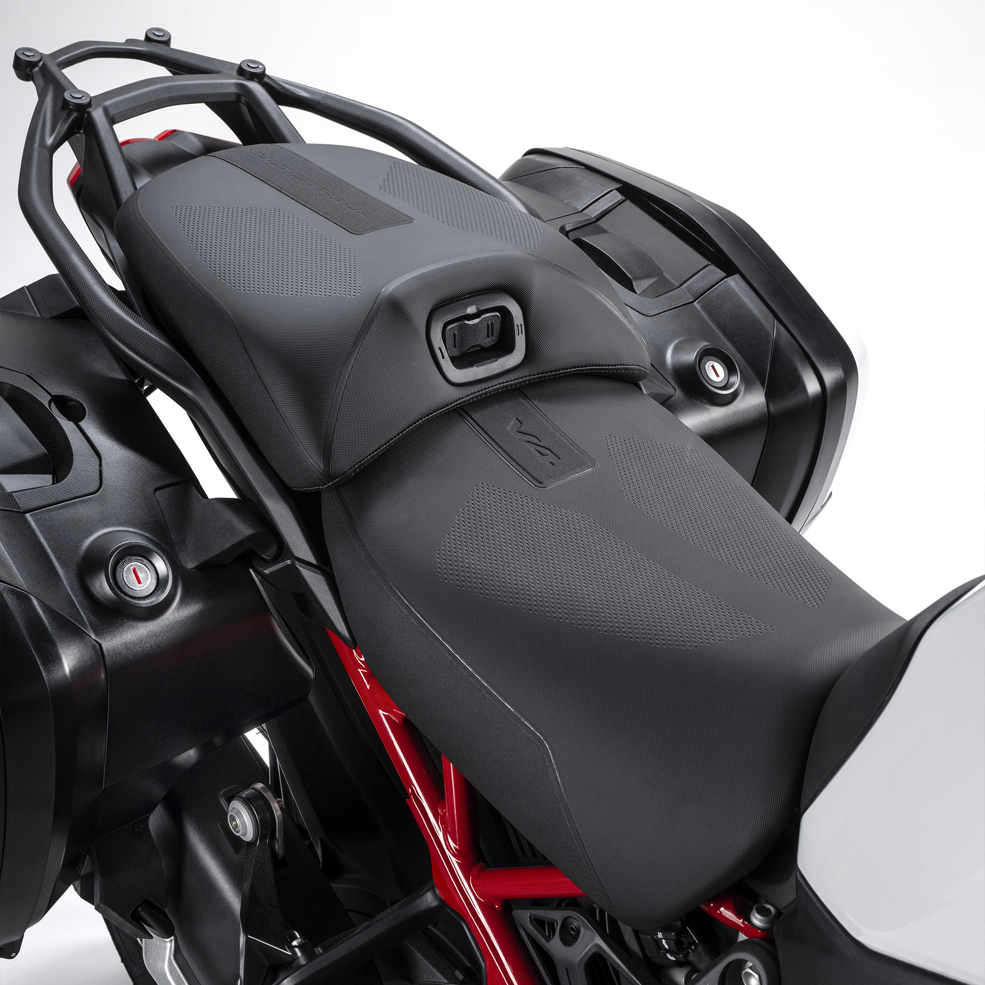A Multistrada V4 redefine o conforto do piloto e do passageiro com uma modificação nos baús superiores e laterais que resulta em uma viagem mais espaçosa e confortável.