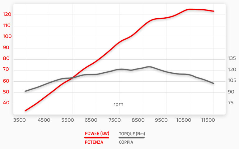 124Nm (12,6 kgfm) @ 9.000 rpm