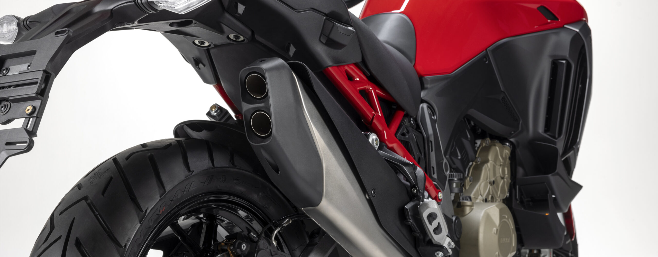 O novo escapamento foi redesenhado para criar um som que combina a esportividade do DNA da Ducati e o conforto acústico derivado da redução das frequências que podem ser cansativas em viagens longas.